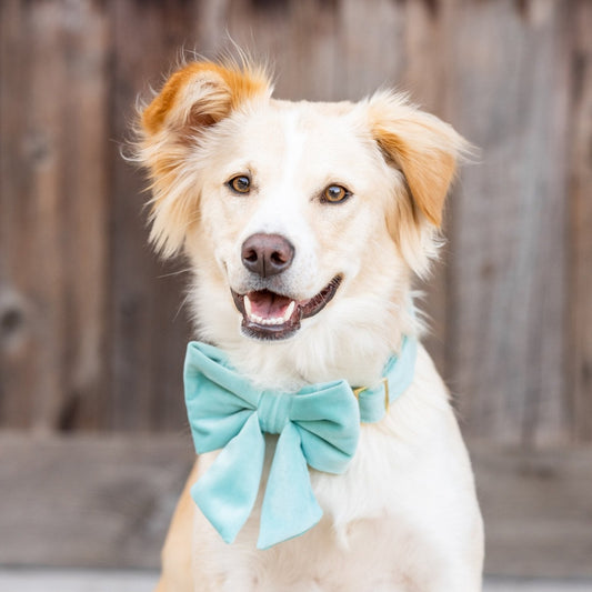 • Robin's Egg Velvet Bow Tie Collar from The Foggy Dog
