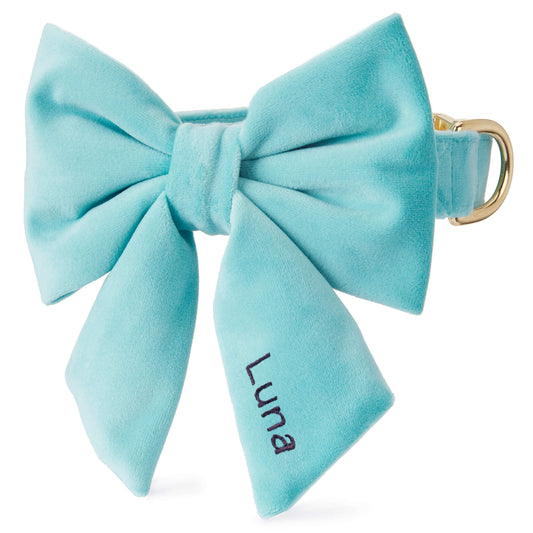 Our most luxe bow tie collar is crafted from soft, sumptuous plush velvet in a light blue. The perfect accessory for weddings and other dress-up occasions. Includes a removable matching bow for two looks in one (plus, save $6 on the set).