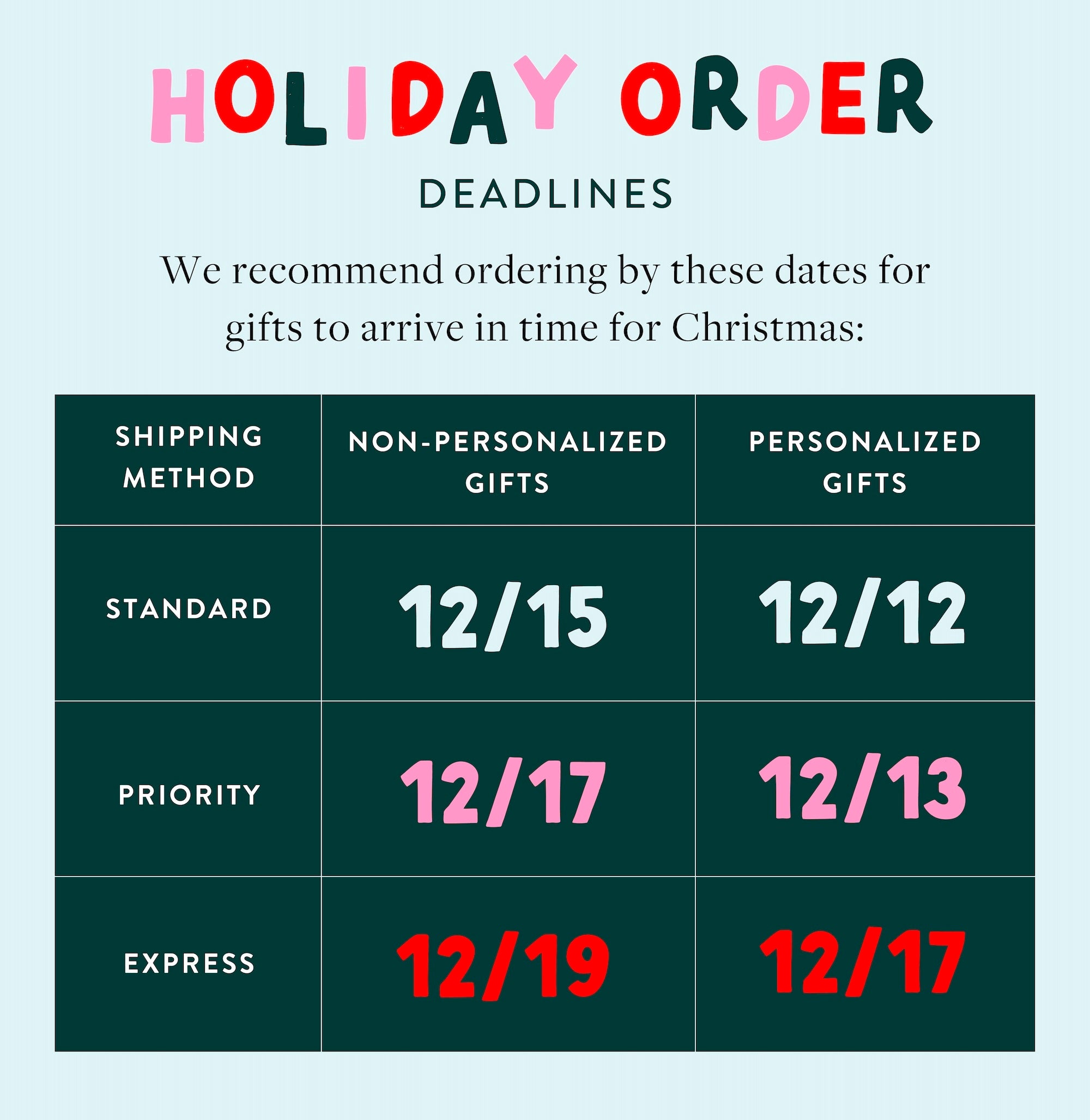 Holiday Order Deadlines at The Foggy Dog