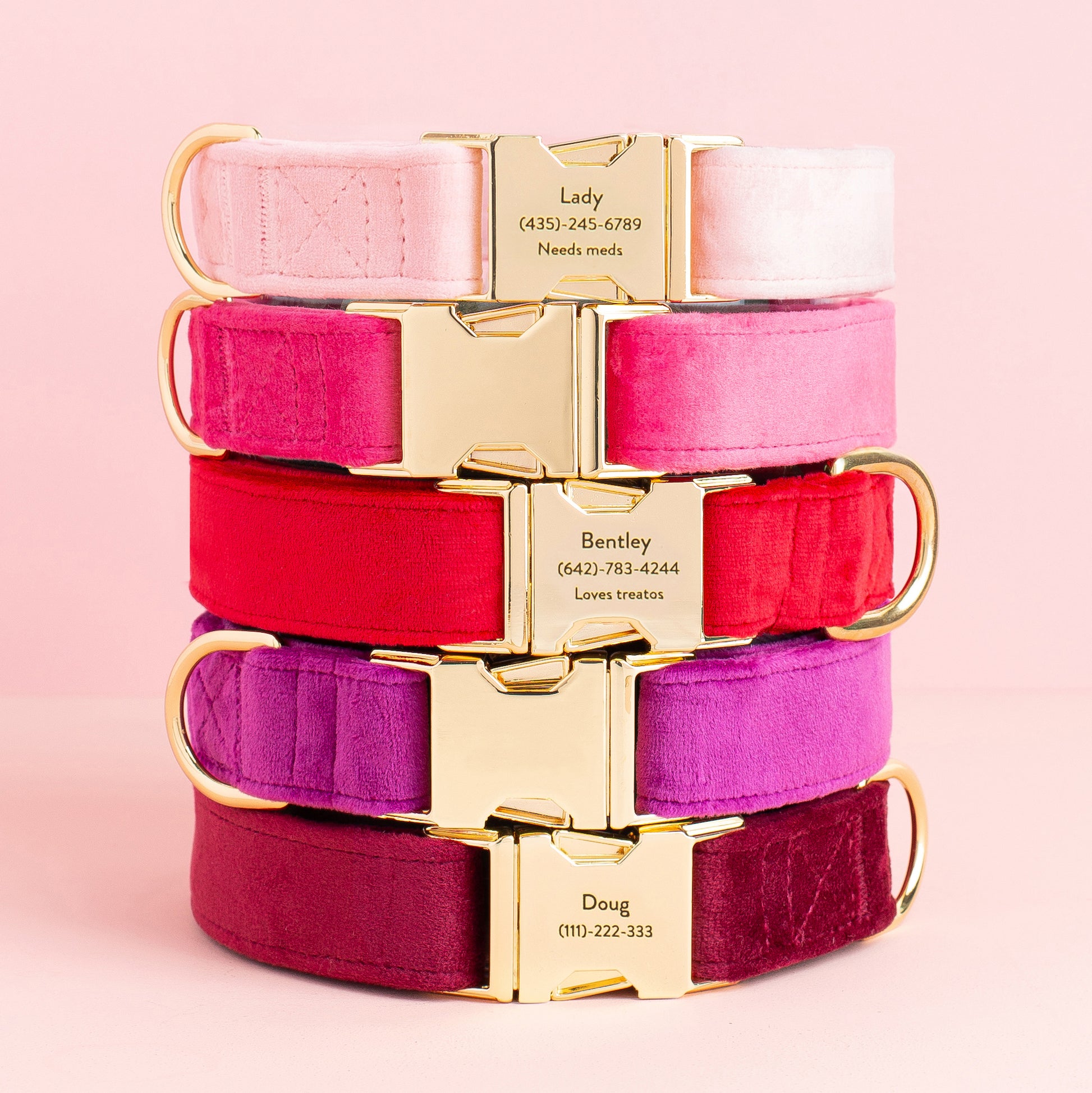 Our most luxe collar is crafted from soft, sumptuous plush velvet in hot pink. The perfect accessory for weddings and other dress-up occasions, but also durable enough for everyday wear.
